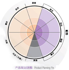 产品规划时,不再是简单的就“产品品类”进行思考,全面考虑某一消费族群、不同的生活环境、特定的生活状态相关产品的完整展示——头上带的,上身穿的,下身穿的,(当然,也有可能是套装)脚下穿的。多样选择,完整,配搭……